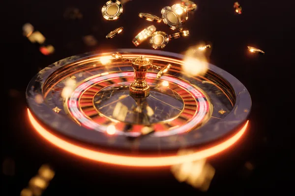 Jogo de azar com uma roda giratória e uma bola.